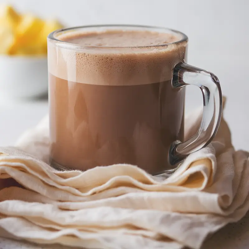 Neben vielen anderen gesunden Inhaltsstoffen enthält naturreiner Kakao Theobromin, dessen Molekülstruktur mit Koffein verwandt ist. Es gilt als angenehm und leicht aufputschend. Eine schokoladige, mildere Alternative zum morgendlichen Hallo-Wach-Kaffee.